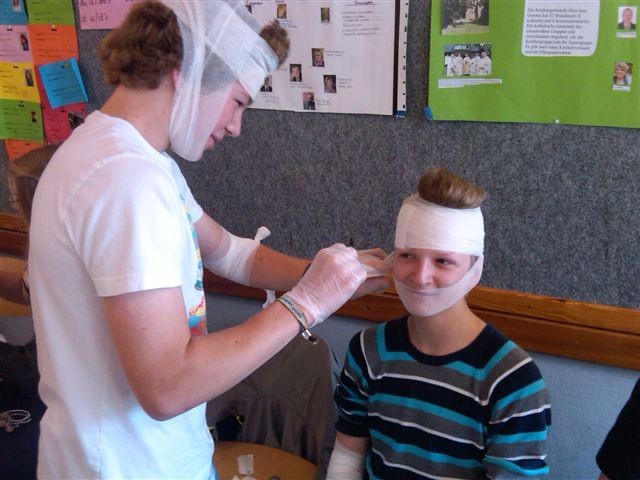 Ungefähr 20 der Teilnehmer/innen wollen sich in einem weiteren Kurs fortbilden und dann im Schulsanitätsdienst (SSD) am Gymnasium Leoninum mitwirken, der im letzten Jahre gegründet wurde