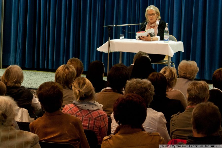 Zahlreiche Gäste waren der Einladung in die Aula des Gymnasiums gefolgt und lauschten gebannt dem Lesevortrag von Ilka Piepgras begleiteten damit in kurzen Abschnitten zwei deutsche Frauen auf ihren Lebenswegen, wie sie unterschiedlicher wohl kaum hätten sein können. Anschaulich beschreibt sie das „sorglose Alter zwischen zehn und 14“. Dickköpfig und eigensinnig sei Charlotte damals gewesen, voller Selbstvertrauen, Optimismus und Unbefangenheit. Sie selber, so Ilka Piepgras, sei eher skeptisch und nachdenklich gewesen. Aber diese Gegensätze seien der Grund für die gegenseitige Anziehung der beiden Mädchen gewesen, die mit ähnlichem familiären, konfessionellen und gesellschaftlichen Hintergrund auf ihren jeweiligen Lebensweg starteten. „Niemals, aber auch wirklich niemals“, so Ilka Piepgras, hätte sie von ihrer Freundin erwartet, dass sie einmal in ein griechisch-orthodoxes Kloster eintreten würde. Für die Familie von Charlotte sei die Entscheidung ein Schock gewesen, doch hätten ihre Eltern irgendwann erkannt, dass jegliche Versuche, sie doch noch umzustimmen, zum Scheitern verurteilt gewesen seien. Sie selber habe einen „ungeheurer Verlust“ gespürt, als die beste Freundin „so verschwunden“ sei.