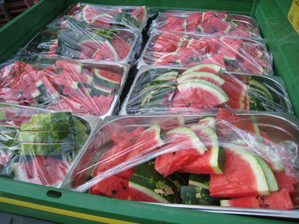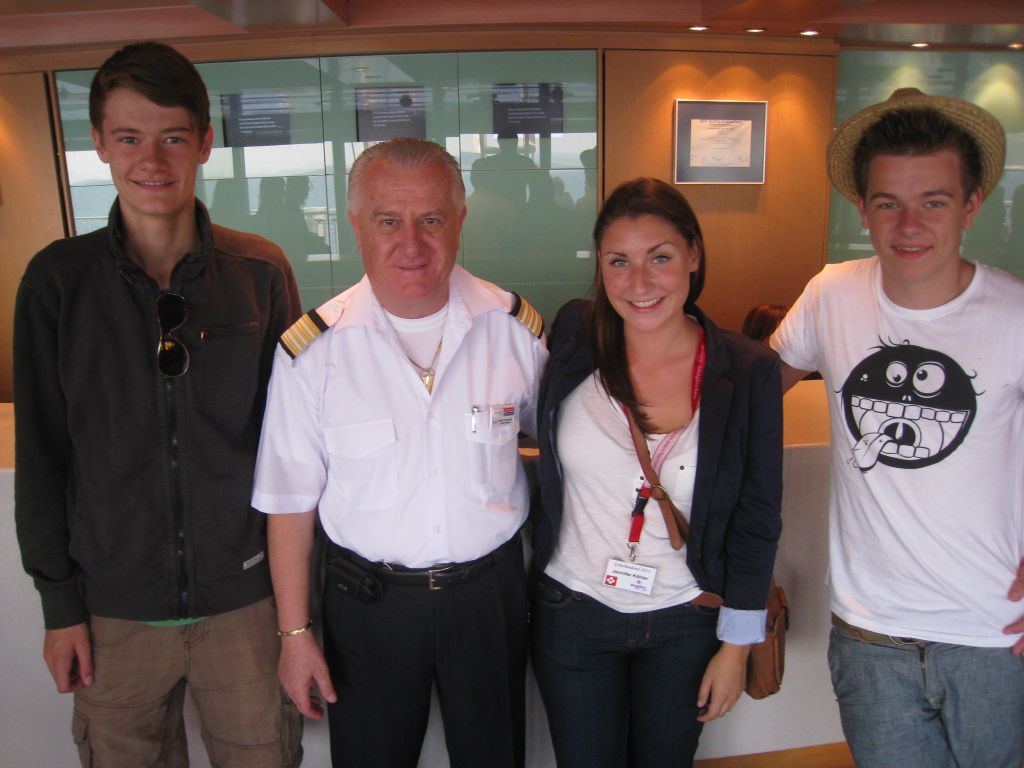 Der Tag auf dem Schiff begann mit einem Früstück; beim Abschied nahm sich sogar der Chief Officer der Fähre Zeit für ein Erinnerungsfoto. Die Strecke vom Hafen in Patras zum Campingplatz war schnell zurückgelegt (20 min.). Dort angekommen wurde wir mit Getränken und Wassermelonen-Stücken empfangen.