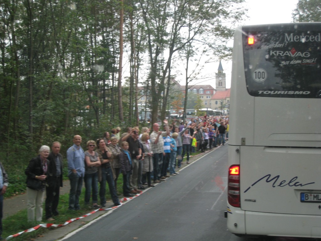 Das muss man erlebt haben und ist selbst für die Teilnehmer der Santiago- und der Rom-Fahrt beeindruckend. Bereits in Schwagstorf gab es die ersten Gruppen, die den Bus-Konvoi begrüßten: