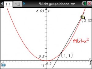 Konnte man mit den Applikationen des alten TI-89 entweder nur Funktionsgraphen zeichnen oder nur geometrische Konstruktionen durchführen, so kann man mit dem neuen Gerät beides verbinden und etwa zu einem Graphen die Sekanten oder Tangenten konstruieren.