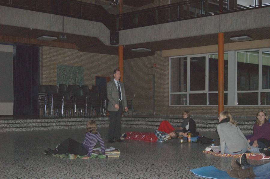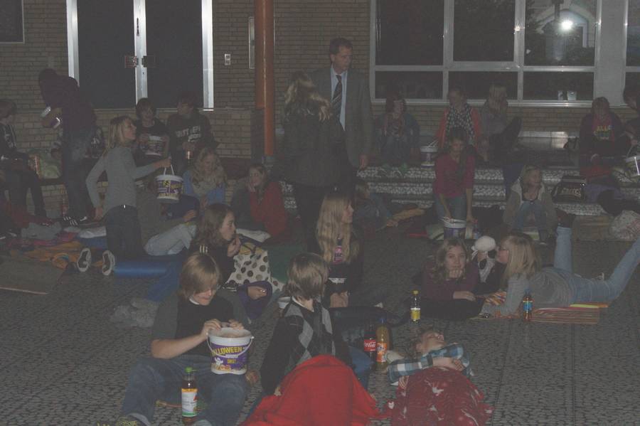 Abends um 18.30 Uhr brachten die Schüler Decken und Kissen mit in die Aula, machten es sich bequem und sahen auf der großen Leinwand „Wallace und Gromit“.