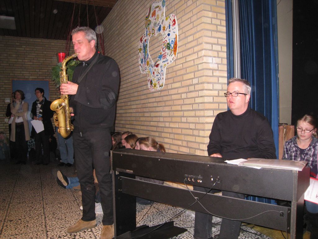 Stimmungsvoll und besinnlich war der Unterrichtsschluss vor den Weihnachtsferien in der Aula des Leoninums: Markus Burger und Jan von Klewitz sorgten für eine “jazzige” Umrahmung der Adventsfeier. Herr Hanneken erinnerte in seiner Begrüßung an die Schulfahrt nach Griechenland und dankte allen Schülern und Lehrern für vielfältiges Engagement und das lebendige Miteinander. Zwei Chöre sangen Weihnachtslieder; Pfarrer Franz hielt die Predigt und erteilte mit P. Demetrius den Segen. Für die Schulpastoral wünschte Frau Prior allen “Frohe Weihnachten!“