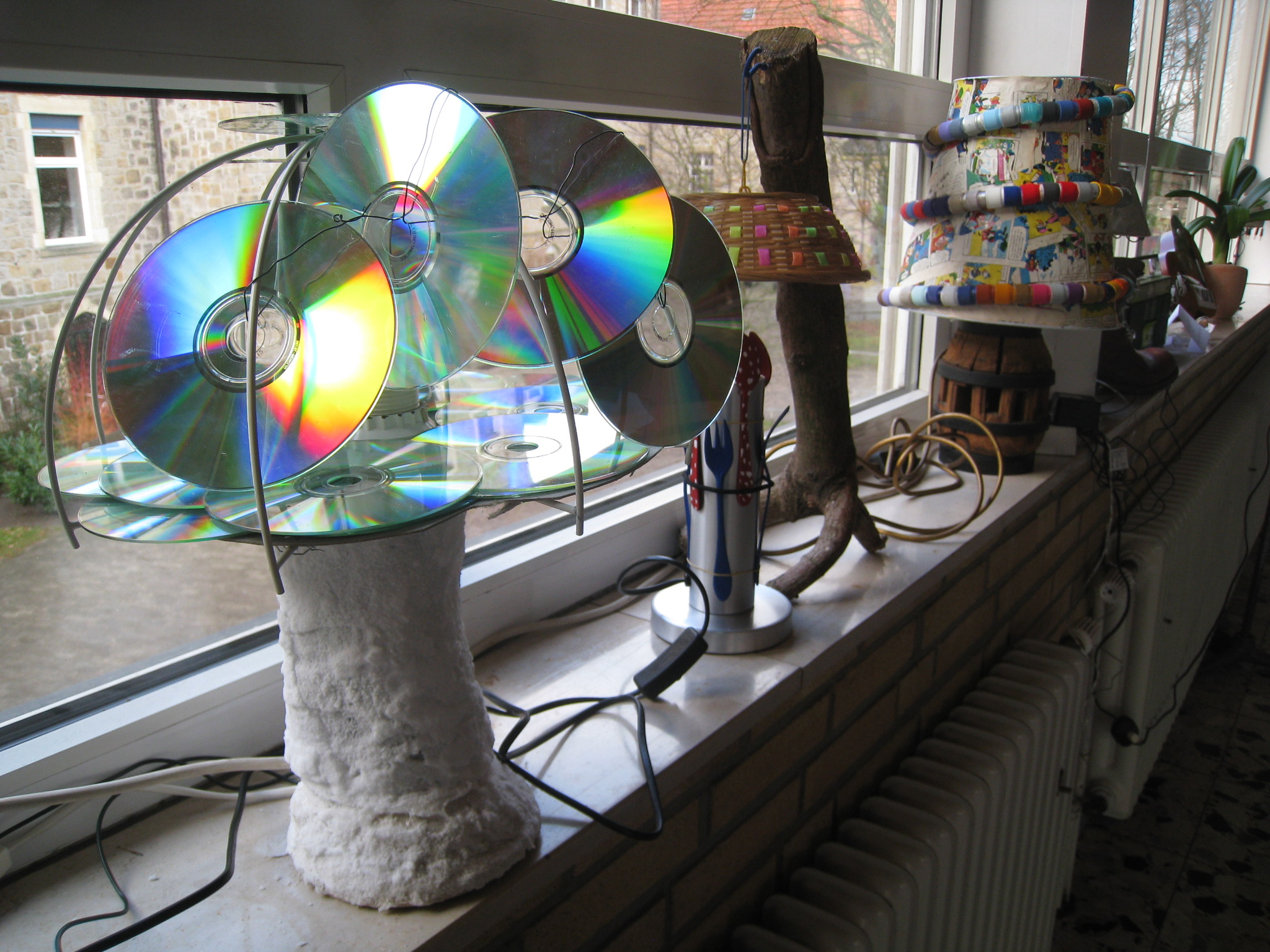 … leuchtet auch durch die von der Klasse 9 e geschaffenen Leuchtobjekte aus Recycling-Materialien. Die Ausstellung kann in der Aula besichtigt werden.