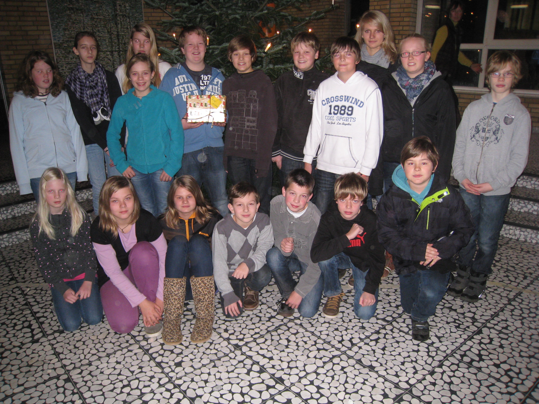 Alle Welt freut sich auf Weihnachten – doch die Bedingungen dafür sind nicht überall gleich. Das wissen natürlich auch die Schüler, Lehrer und Eltern des Leoninums und deshalb unterstützen sie bereits seit Jahren tatkräftig eine Aktion, die Weihnachtspakete zu einem Kinderheim in Satumare (Rumänien) schickt. Auch in diesem Jahr wurden wieder 131 Lebensmittelpakete, 100 Pakete mit Schulmaterialien sowie viele Pakete mit Kleidung, Schuhen, Spielzeug und Bettwäsche auf den Weg gebracht. In der heutigen Vollversammlung bedankte sich dafür Frau Lemmermöhle bei allen Schülern, Frau Meemann und Frau Ahrens, die diese Aktion unterstützt haben. Denn diese Pakete mussten nicht nur gespendet, sondern in der Schule auch gelagert und verladen werden. Daran haben sich 22 Schülerinnen und Schüler besonders beteiligt, von denen sich die meisten nach der Vollversammlung noch zu einem Foto in der Aula versammelt haben.