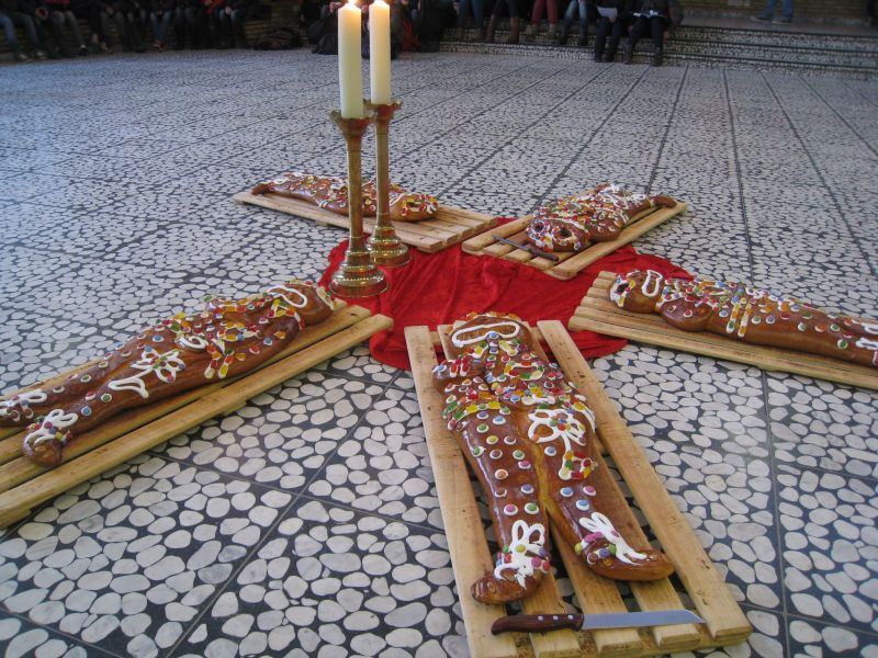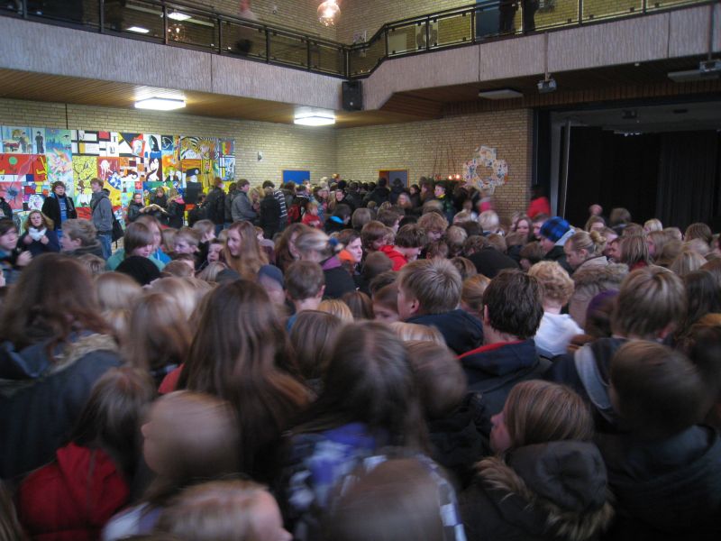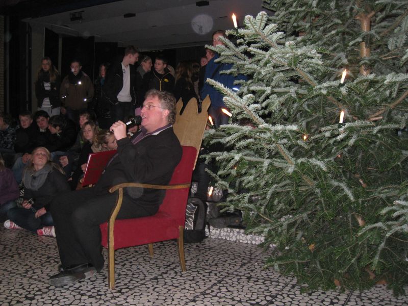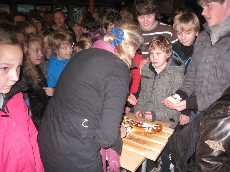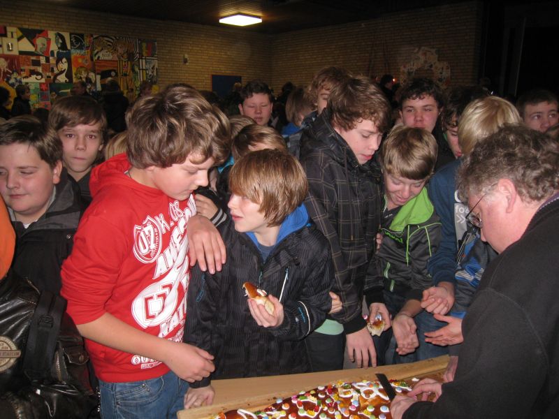 In den Niederlanden wird “Sinterklaas”, der deutsche “Sankt Nikolaus”, noch mehr verehrt und gefeiert als in Deutschland. Also lag es nahe, dass Pater Rektor Olav Hamelijnck, gebürtiger Niederländer, am 6. Dezember alle Schülerinnen und Schüler sowie alle Lehrerinnen und Lehrer zu einer besinnlichen Pause in die Aula einlud. Im Gepäck hatte er dabei nicht nur eine Geschichte aus dem Leben des heiligen Nikolaus, sondern auch viele kleine und einige große Stutenkerle, die am Ende der Pause einen reißenden Absatz fanden. Zeitweilig erinnerte die Szene an die “Speisung der Fünftausend” – auch dabei sind ja alle satt geworden. Musikalisch umrahmt wurde die Pause vom “Regenbogen-Orchester” unter Leitung von Herrn Scharf.
