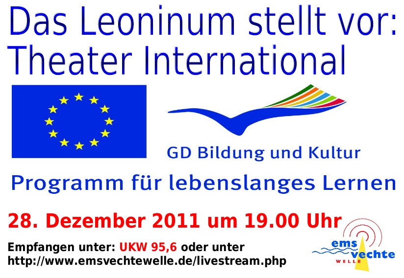 Theater International: 28.12.2011 im Radio 15. Dezember 2011 | Administrator | Kategorien: Vergangene Aktionen Archiv Vergangene Aktion