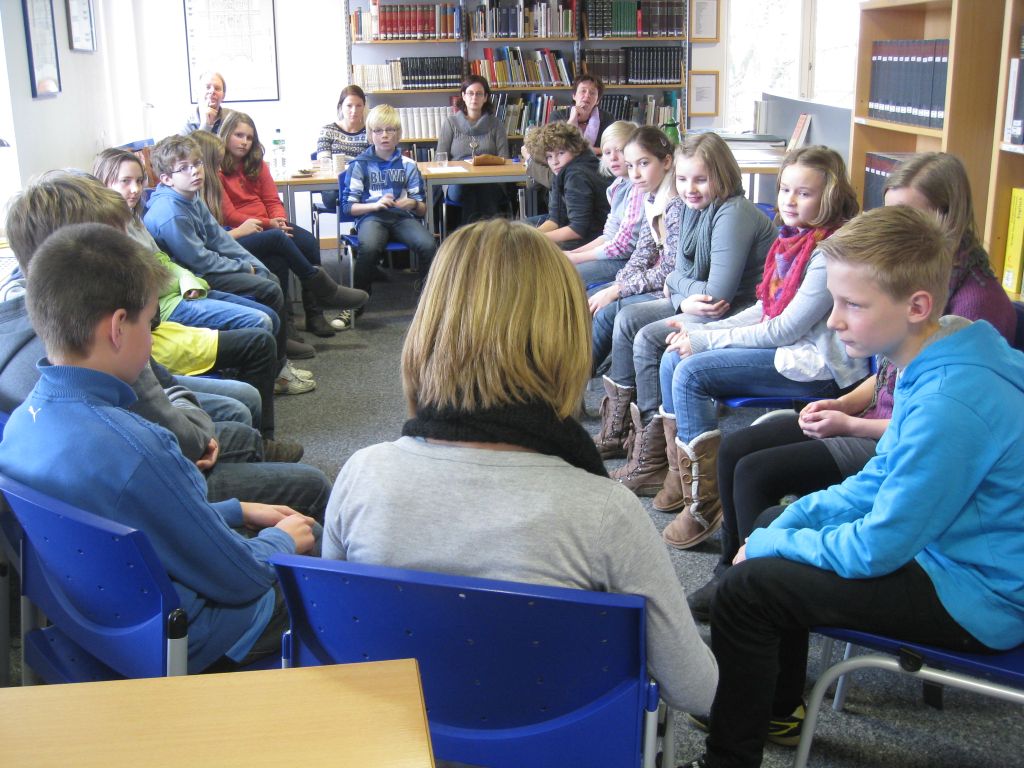 Nachdem in allen 6. Klassen zunächst bei Klassen-Ausscheidungen die jeweils besten drei Vorleser der Klasse bestimmt waren, trafen sich diese Klassensieger heute in der Bibliothek, um dort durch eine Jury den besten Vorleser der Schule zu bestimmen. Dabei musste zunächst ein Abschnitt aus einem selbst gewählten Buch vorgelesen werden, dann eine unbekannte Passage aus einem fremden Buch. Die Entscheidung für die vierköpfige Lehrer-Jury war schwer, denn alle Schülerinnen und Schüler zeigten ein hohes Niveau – immerhin hatten sich sich ja schon in ihren Klassen durchgesetzt. Schließlich konnte nur eine gewinnen und das war in diesem Jahr Lena Thünemann aus der Klasse 6 c. Lena wird das Leoninum jetzt beim Vorlese-Kreisentscheid gegen die Sieger anderer Schulen vertreten. Herzlichen Glückwunsch und wir drücken die Daumen!
