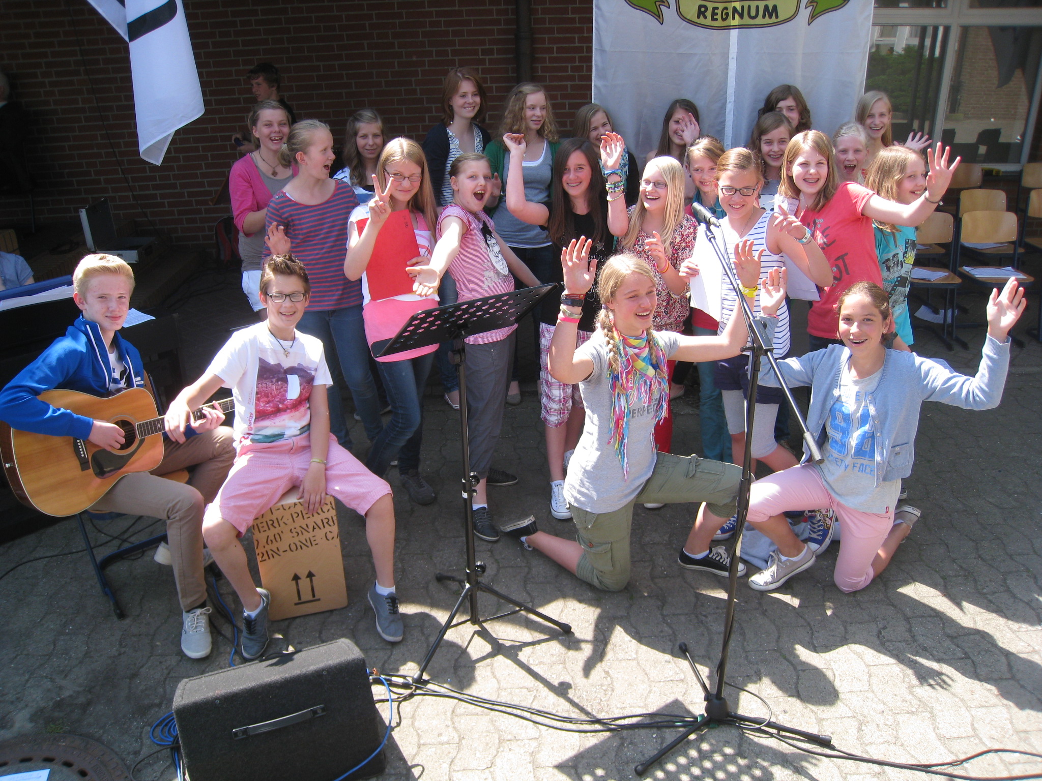 Für die musikalische Gestaltung des Gottesdienstes am Dehon-Tag war eine Schülergruppe unter der Leitung von Frau Steege zuständig. Der Name “Unter- und Mittelstufenchor” klingt (noch) etwas sperrig, aber dass die Schülerinnen und Schüler nicht nur musikalisch “gut drauf” waren, beweist das folgende Foto: