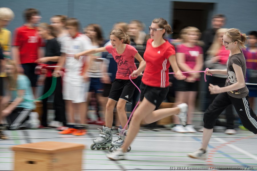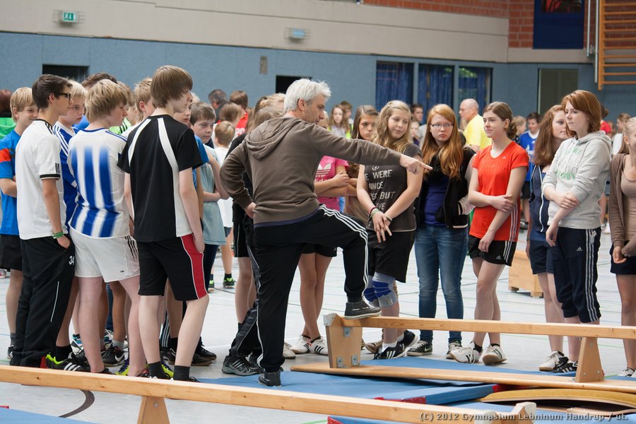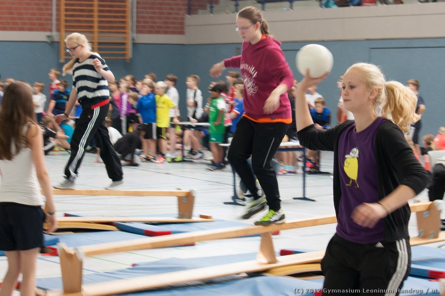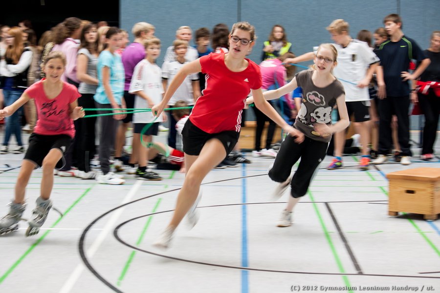 Der vorletzte Tag der Projektwoche 2012 war der Sporttag. Die Schülerinnen und Schüler konnten sich mal so richtig “bewegen”. In der Sporthalle hatte die Fachschaft Sport für die Jahrgänge 7 bis 9 verschiedene Stationen aufgebaut. Besonders spektakulär war das “Wagenrennen” – ohne echte Wagen und Pferde, aber die gebotene “action” konnte sich durchaus mit “Ben Hur” messen… Fotos aus der Sporthalle anbei!