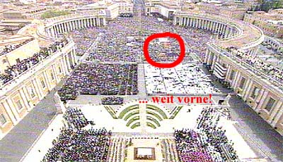 Am 26. April 2005 erschien auf der Homepage des Gymnasiums Leoninum dieses Bild, das belegte, dass beim Einführungs-Gottesdienst von Papst Benedikt XVI. über 1000 Handruper Schülerinnen und Schüler, Lehrerinnen und Lehrer sowie Eltern auf dem Petersplatz “live” dabei waren: