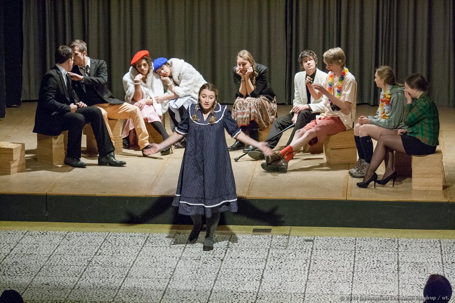 Jede der Gruppen hatte einen Akt konzipiert, bevor die Teile nun in Handrup zu einem Stück zusammengeführt wurden. Die Darsteller agierten dabei in ihrer jeweiligen Landessprache. Während die polnische Gruppe aufzeigte, dass es sich bei Tyrannei nicht allein um ein politisches Thema handelt, sondern um ein Phänomen, das auch Familien betreffen kann, verlegten die niederländischen und deutschen Schüler ihre Szenen auf eine Insel. Im zweiten Akt zeigten die niederländischen Schüler den Kampf der dort Gestrandeten in einem aristokratischen System, während die Darsteller des Gymnasiums Leoninum den doch teilweise mühevollen Weg zur Demokratie nachzeichneten.
