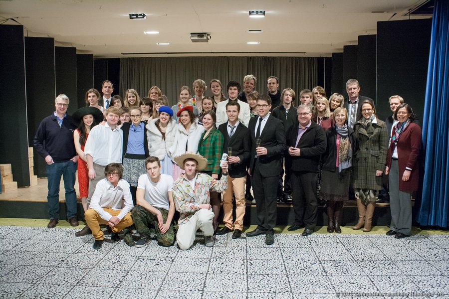 Schulleiter Franz-Josef Hanneken begrüßten alle Anwesenden in ihren jeweiligen Landessprachen und unterstrich, dass mit dem Theaterstück „etwas Tragfähiges herausgekommen“ sei, gehe es „über alle Grenzen hinweg mit den Wurzeln unserer Kultur nicht nur um ein gemeinsames Gewordensein, sondern um das, was uns als Wertegemeinschaft verbindet, ja begründet.“ Sein Dank galt in besonderer Weise den Schülerinnen und Schülern sowie den begleitenden Lehrkräften, aus den Niederlanden Ward Warmoeskerken und Dirk Klijs, aus Sosnowiec Maria Krotla und Dorota Domagal sowie Meik Matzki und Dr. Thomas Kock aus Handrup.