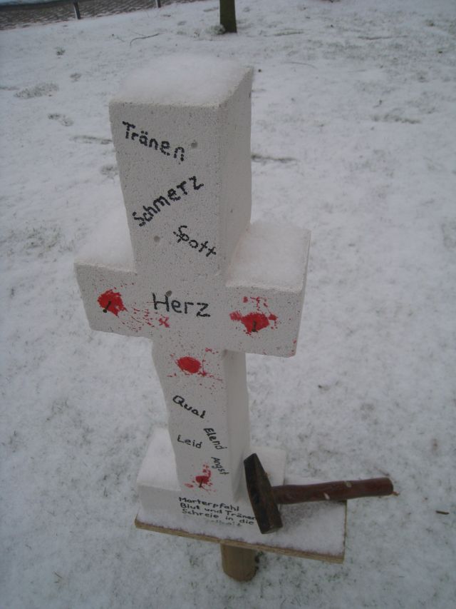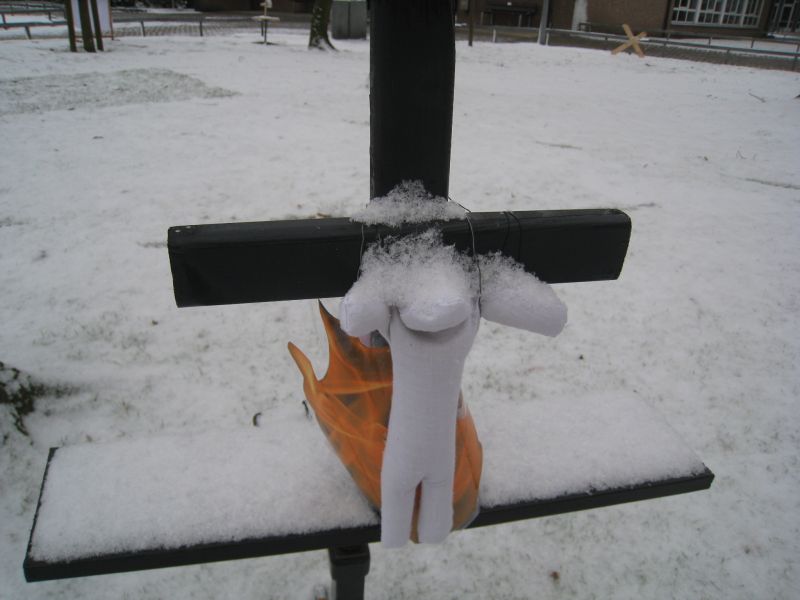 Der Schneefall der letzten Tage hat dem Kreuzweg, der auf dem Handruper Schulgelände aufgebaut ist, eine besondere Atmosphäre verliehen. Hier einige Impressionen: