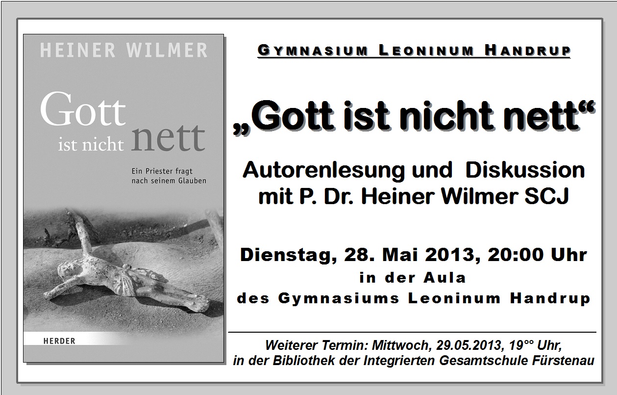 “Gott ist nicht nett” – Autorenlesung und Diskussion mit P. Dr. H. Wilmer 15. April 2013 | Administrator | Kategorien: Vergangene Aktionen