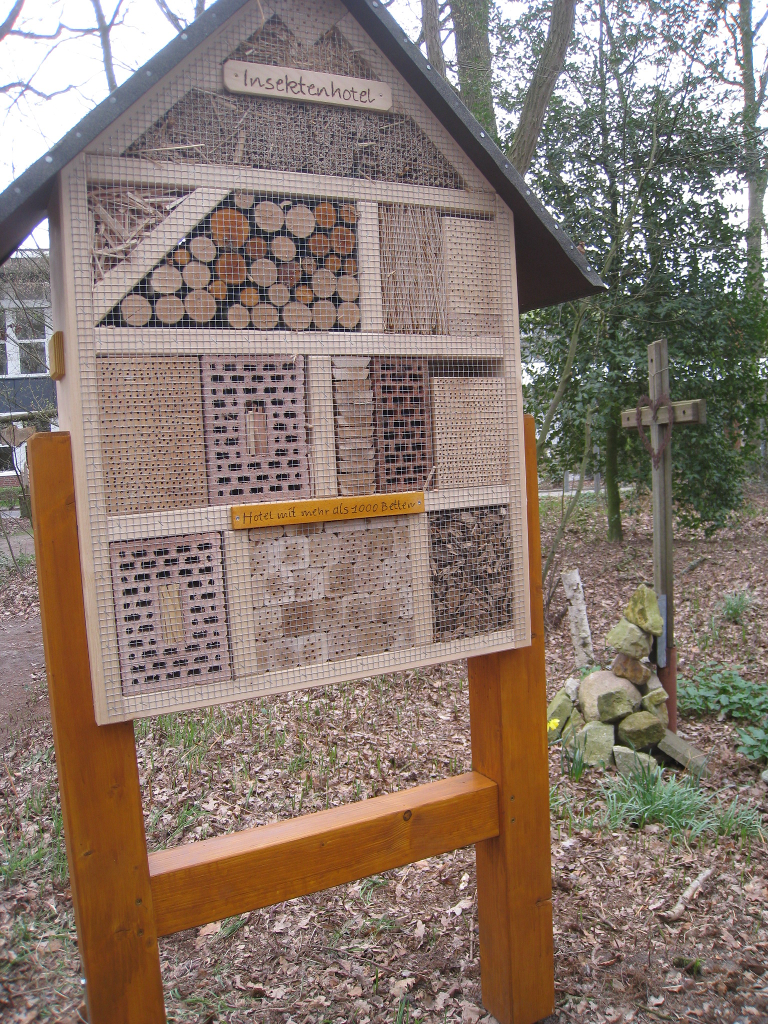 Neuestes Objekt von Schwester Nicole ist ein Insektenhotel, wie es von den Beschützenden Werkstätten, Lingen, hergestellt wird.