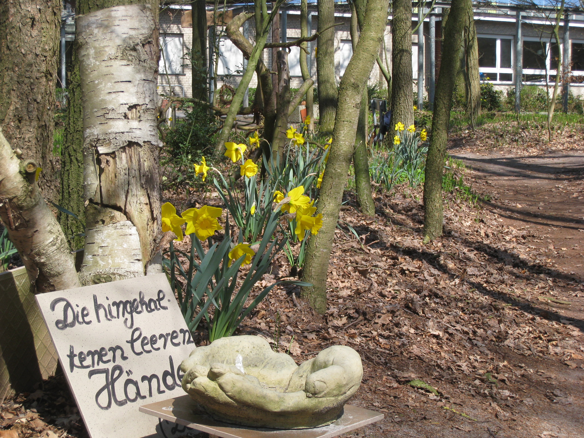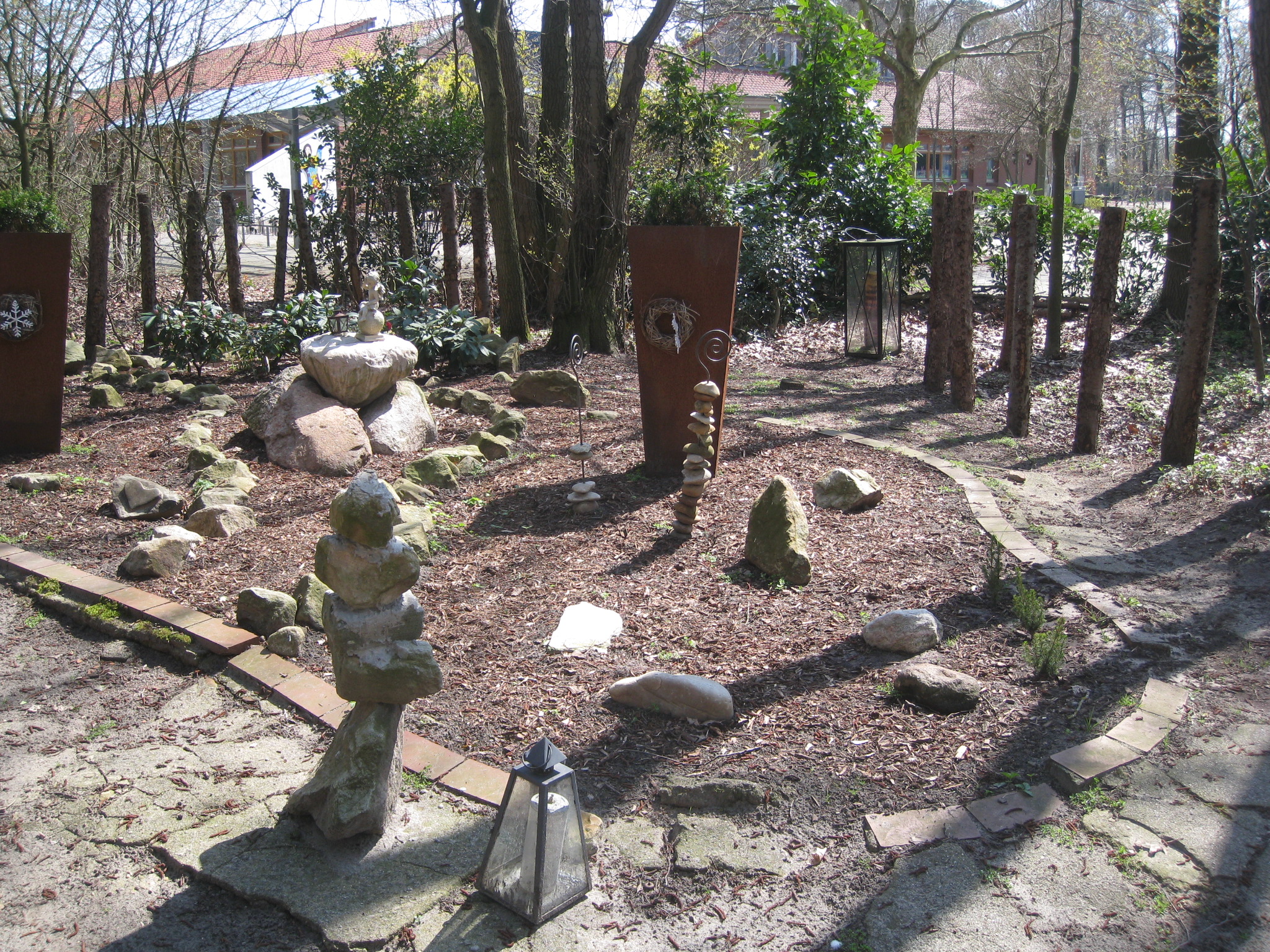 In unmittelbarer Nachbarschaft des Gymnasiums Leoninum ist seit einiger Zeit eine wundervolle Oase der Ruhe und Meditation entstanden – der “Luna-Park”. Die Herkunft des Namens ist nicht eindeutig geklärt, vielleicht waren es in früheren Zeiten die ehemaligen Internatsbewohner des “Missionshauses Handrup”, die sich in dem kleinen Wäldchen zu später Stunde (erlaubterweise???) noch trafen. Jedenfalls steht der Name fest und seitdem sich Schwester Nicole, die “gute Seele” von der Klosterpforte, mit viel Liebe und fleißigen Helfern (z. B. den Hausmeistern Peter Jansen und Franz Koop) des Grundstücks zwischen Gymasium, neuer Turnhalle und Grundschule angenommen hat, ist dort ein “Juwel” gewachsen: Der Wald wurde durchforstet, neue Wege und Bänke angelegt, viele kleine Stationen angelegt, die mit Symbolen und Sinnsprüchen zum Betrachten, Verweilen und Nachdenken einladen.