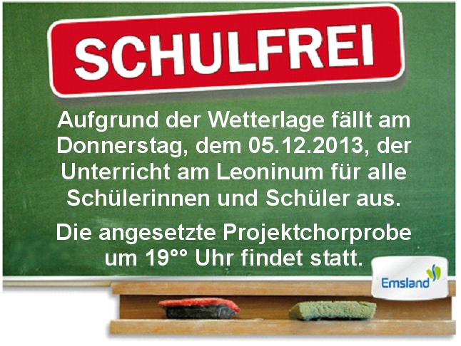 Witterungsbedingter Unterrichtsausfall am Donnerstag 04. Dezember 2013 | Administrator | Kategorien: Vergangene Aktionen Handrup Leoninum