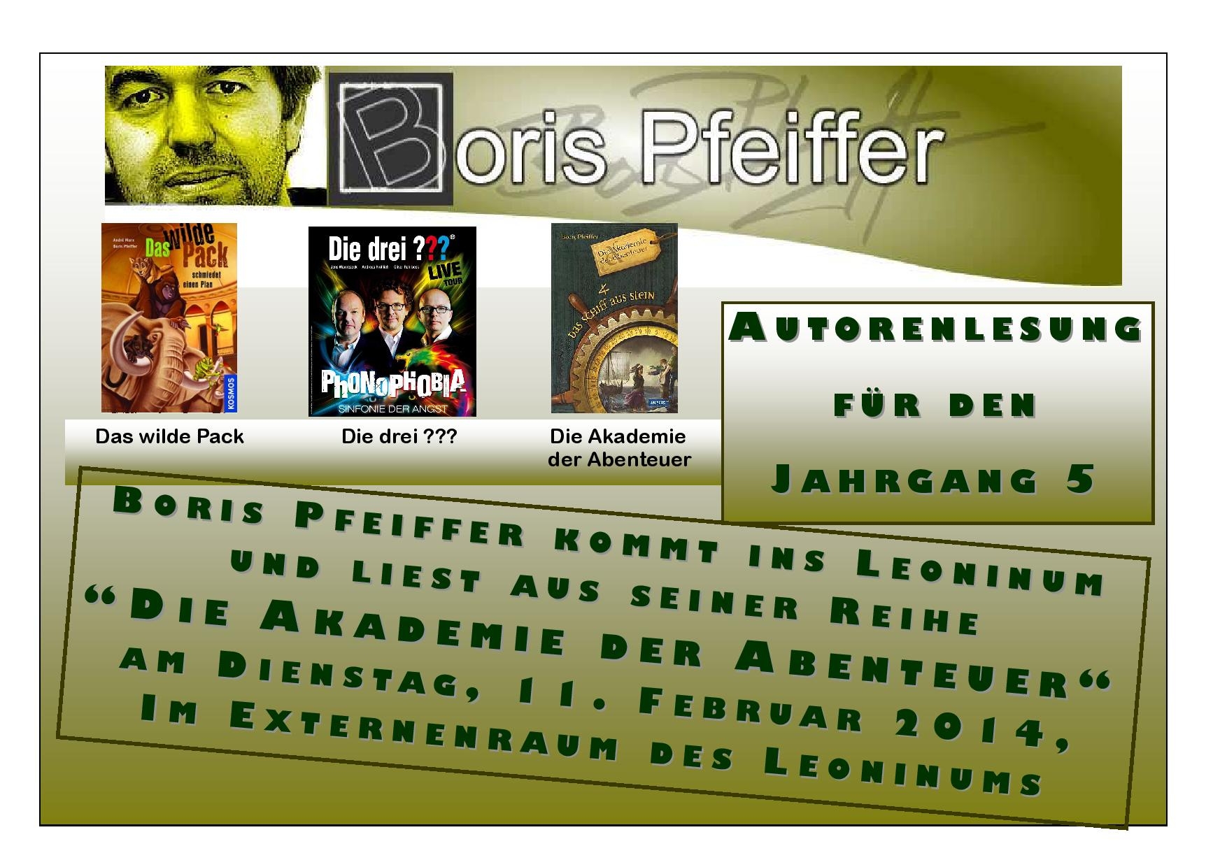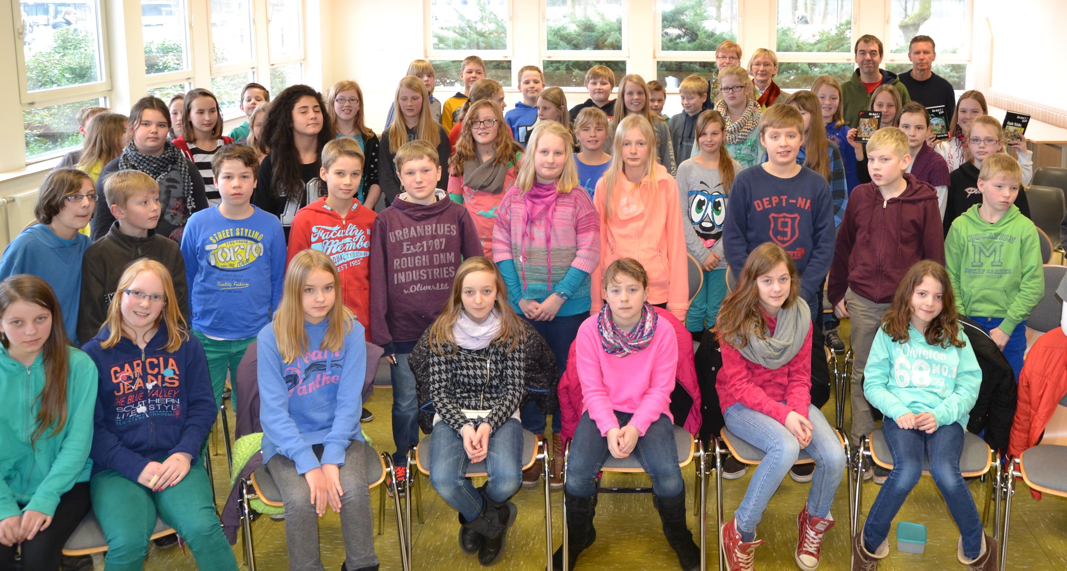 Boris Pfeiffers Gesichtsmimik verrät, dass es ihm sichtlich Spaß macht, den Schülerinnen und Schülern des 5. Handruper Jahrgangs vorzulesen. Seine Augen „kullern“ und seine Stimmlagen bereiten die Zuhörer gekonnt auf das nächste Detail seiner spannenden Erzählung vor.In Zusammenarbeit mit der Hochschul- und Stadtbibliothek Lingen hatte das Bibliotheksteam des Leoninums den zur Zeit beliebsteten Kinder- und Jugendbuchautor nach Handrup eingeladen.Der Berliner Autor, der über 80 Kinderbücher und Theaterstücke geschrieben hat, hatte für die Handruper Fünfklässler die Episode „Die Knochen der Götter“ aus der Reihe „Die Akademie der Abenteuer“ ausgewählt. Seine Hauptdarsteller führte er damit in die packende Welt der Geschichte. Unterhaltsam gelang es ihm, mit seinen spannenden, lustigen und sozialen Geschichten die Aufmerksamkeit der Kinder zu wecken.In einer häufig ausschließlich von Computern bestimmten Freizeit der Kinder, bestand das gemeinsame Ziel von Autor, Schulbibliothek und Schule darin, den jungen Zuhörern das Buch als eine echte, weil kreative Alternative bei der „Entdeckung der Welt“ anzuempfehlen. In Handrup wurde dieses Ziel an diesem Vormittag sicher erreicht: Innerhalb kürzester Zeit waren im Anschluss an die Lesung alle Bücher von Boris Pfeiffer in der Schulbibliothek ausgeliehen.
