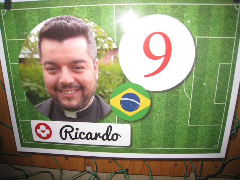 … präsentieren sich die Herz-Jesu-Priester in diesen Tagen vor dem Schulpastoralraum. Und während Fußball-Deutschland noch über Miroslav Klose oder die “falsche 9” diskutiert, hat sich P. Ricardo bereits als “echte 9” geoutet.