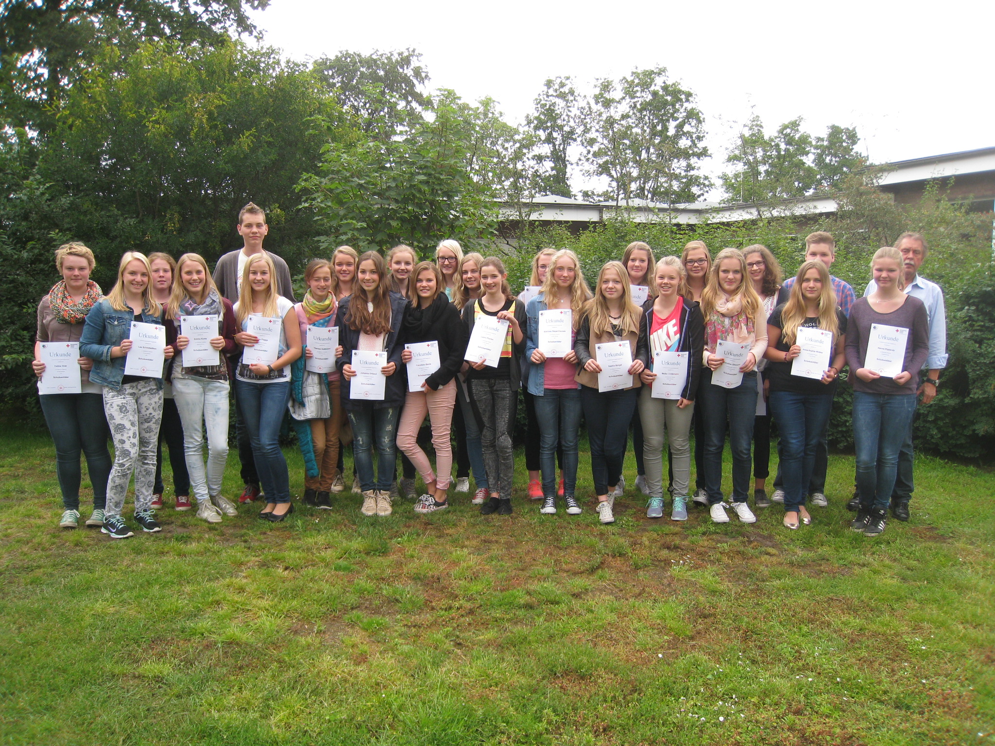 28 Teilnehmer erklärten sich zu einer weiteren Fortbildung am Freitag, 20. Juni 2014, bereit und wurden zu Schulsanitäterinnen und Schulsanitätern ausgebildet. Somit steigt am Leoninum Handrup die Zahl zum neuen Schuljahr 2014/15 auf 71 Mitgliedern an.