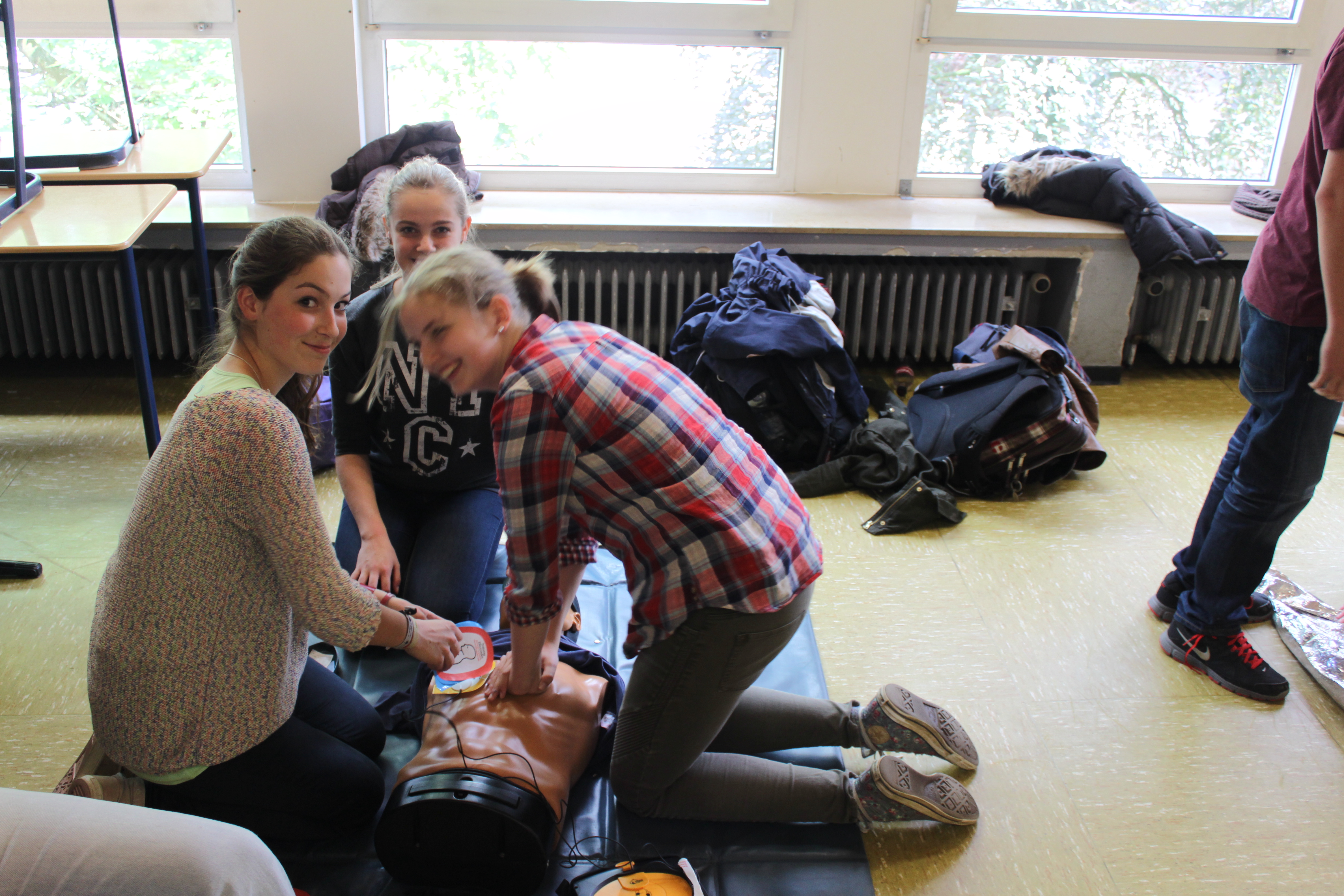 Am Dienstag, dem 22. April 2014 – letzter Tag der Osterferien, nahmen 128 Schülerinnen und Schüler des 8. Jahrgangs freiwillig an einer Schulung in „Medizinischer Erstversorgung für Jugendliche mit Selbsthilfeeinheiten“ teil.