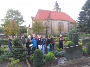 Anschließend zeigte er der Schülergruppe noch die Gräber der Verstorbenen auf dem Handruper Friedhof.