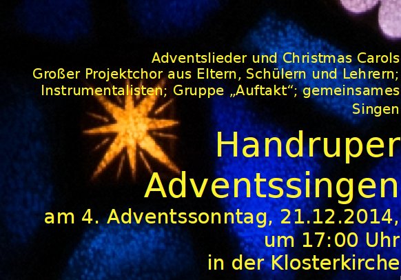 Handruper Adventssingen 10. Dezember 2014 | Administrator | Kategorien: Aktuelles Advent Handruper Adventssingen Weihnachten