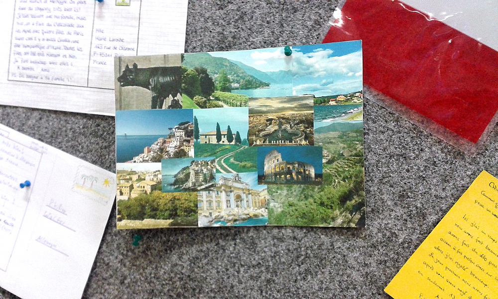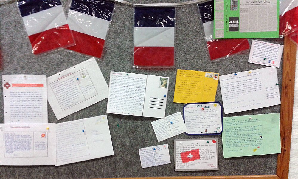 – Die Gruppen des Jahrgangs 9 haben beeindruckende Briefe und Postkarten zum Thema «vacances au loin- Urlaub in der Ferne» geschrieben und gestaltet.