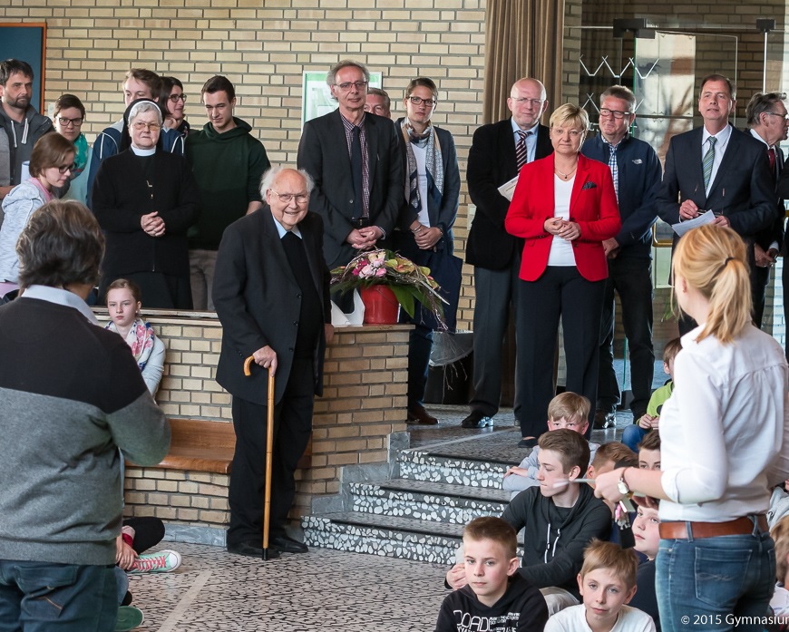 Vor wenigen Tagen nahm P. Westendorf beim Besuch von Kultusministerin Heiligenstadt an der monatlich stattfindenden Vollversammlung der Schulgemeinschaft teil.