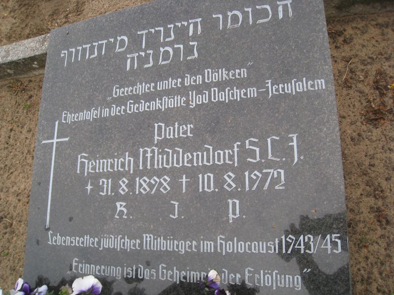 Der 8. Mai 1945 spielt natürlich auch im Geschichtsunterricht eine Rolle. Doch wie gehen – gerade jüngere – Schülerinnen und Schüler heute mit diesem Datum der deutschen und europäischen Geschichte um? Eine 6. Klasse besuchte den Handruper Friedhof, wo auf der Grabplatte von P. Heinrich Middendorf das jüdische Sprichwort “Erinnerung ist das Geheimnis der Erlösung” zitiert wird. P. Middendorf wird in der israelischen Gedenkstätte Yad Vashem als “Gerechter unter den Völkern” verehrt, weil er im Holocaust jüdisches Leben gerettet hat. Dass es keine “Stunde Null” gegeben hat und die Ereignisse, die zum 8. Mai 1945 geführt haben, nicht vergessen werden dürfen, besprachen die Schülerinnen und Schüler vorher und anschließend.
