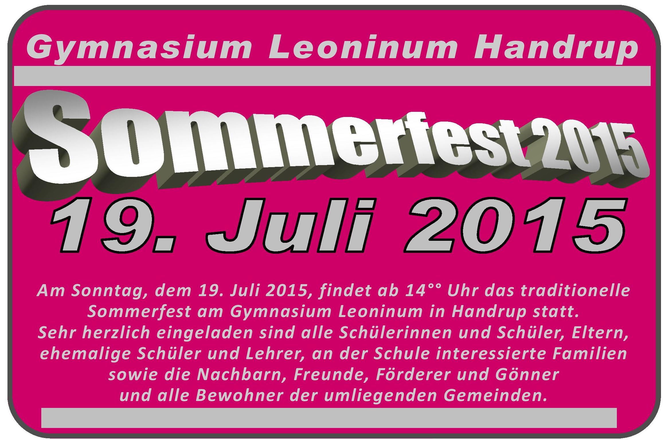 Am kommenden Sonntag ab 14°° Uhr: Traditionelles Sommerfest 14. Juni 2015 | Administrator | Kategorien: Vergangene Aktionen Handrup Leoninum Handrup Sommerfest