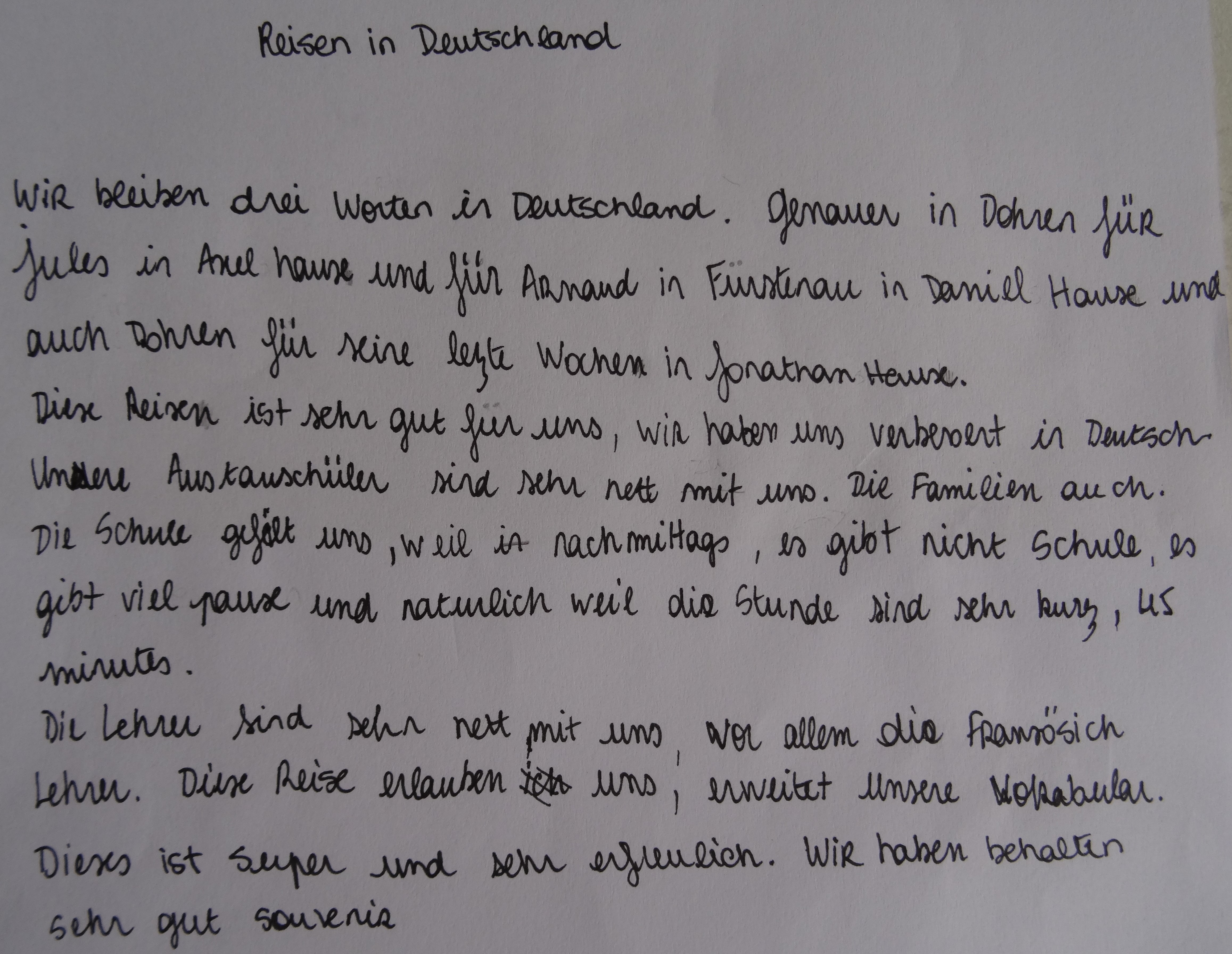 Im Anschluss an den Austausch mit Tours verlängerten zwei französische Schüler, Jules und Arnaud, ihren Aufenthalt in Deutschland noch für ein paar Wochen und wohnten während dieser Zeit in ihren deutschen Partnerfamilien.