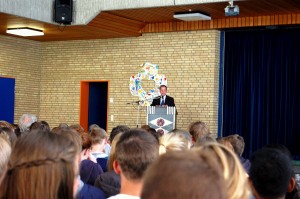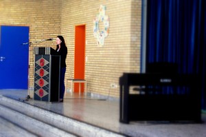 “Wir möchten heute kurz auf unser gemeinsames Comeniusprojekt „Die Anfänge der europäischen Zusammenarbeit nach der Urkatastrophe des 1. Weltkriegs“ zurückblicken. Das was wir heute hier sehen – die Bilder von Kriegsgräbern, einige Biografien von Persönlichkeiten, die sich bereits in dieser Zeit um die europäische Zusammenarbeit bemüht haben – und das, was wir gleich hören werden, ein Ausschnitt aus dem von uns gemeinsam produzierten Hörspiel über den 1. Weltkrieg – ist natürlich nur ein kleiner Ausschnitt aus der Arbeit.