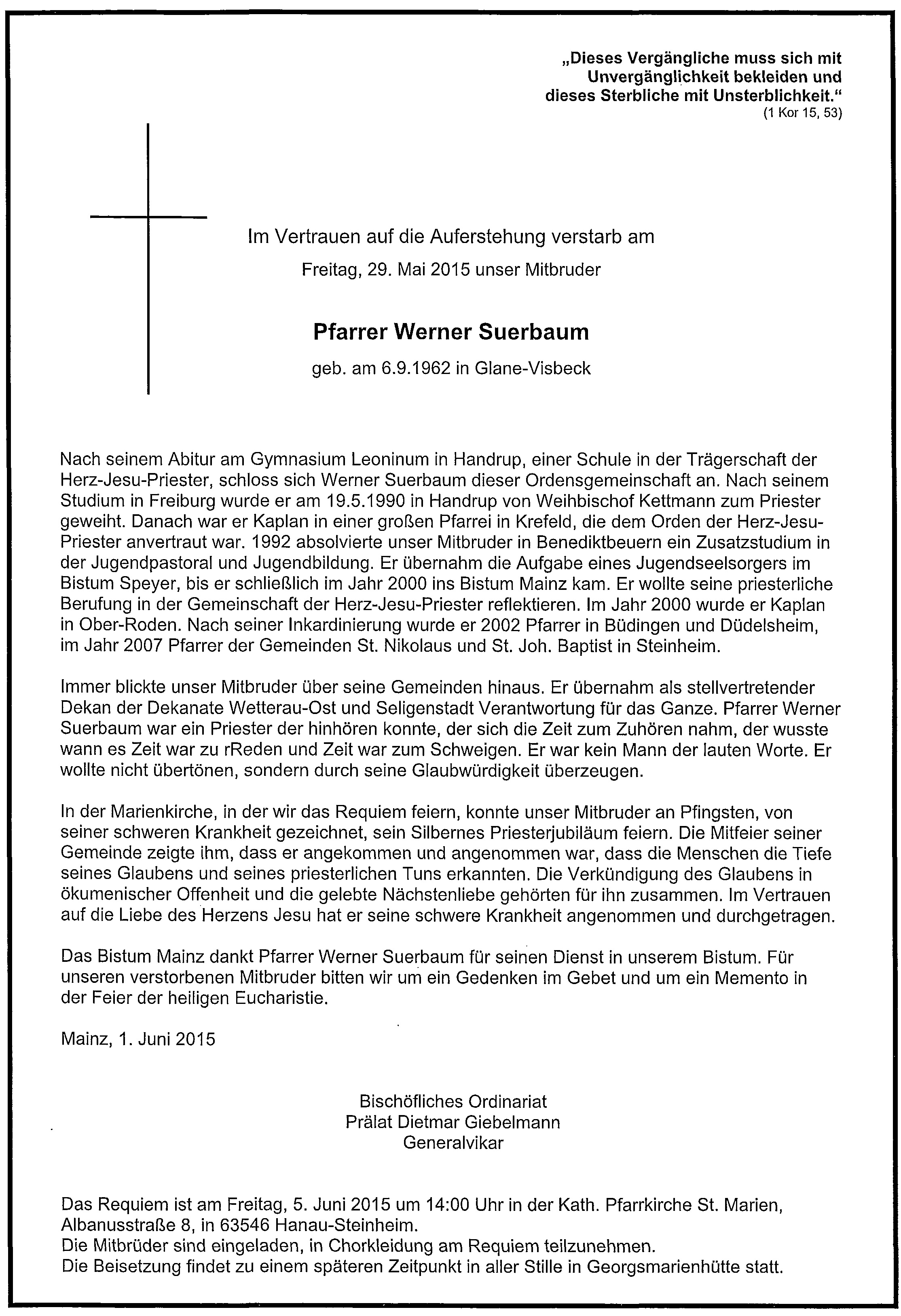 Wir trauern um Pfr. Werner Suerbaum 09. Juni 2015 | Administrator | Kategorien: Vergangene Aktionen Gymnasium Leoninum Handrup