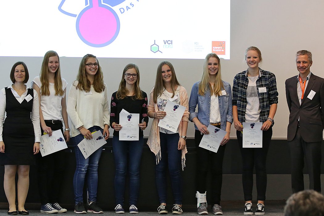 Nach der erfolgreichen Teilnahme im vergangenen Jahr haben sich in diesem Schuljahr unsere Schülerinnen nochmal gesteigert. Von den insgesamt 1149 Teilnehmern bei diesem landesweiten Wettbewerb des VCI wurden die 55 besonders erfolgreichen Schüler zur Preisverleihung nach Hannover eingeladen. Pia Beerboom, Anna Dießner, Johanna Hofhues, Jana Hüsken, Josefine Mainka und Katharina Meyerdirks sind die diesjährigen Preisträger unserer Schule.