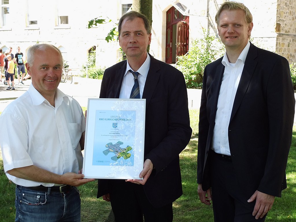 Den Klimaschutzpreis 2015 der Samtgemeinde Lengerich, ausgelobt von der RWE Deutschland AG, erhielten in diesem Jahr das Gymnasium Leoninum und das Herz-Jesu-Kloster. RWE Kommunalbetreuer Josef Reinke und Samtgemeindebürgermeister Matthias Lühn übergaben die Urkunde im Rahmen der Juli-Vollversammlung an Schulleiter Franz-Josef Hanneken. Das Leoninum und das Herz-Jesu-Kloster wurden damit für ihre kreativen Ideen und Umsetzungen im Bereich der Energieeinsparung ausgezeichnet.