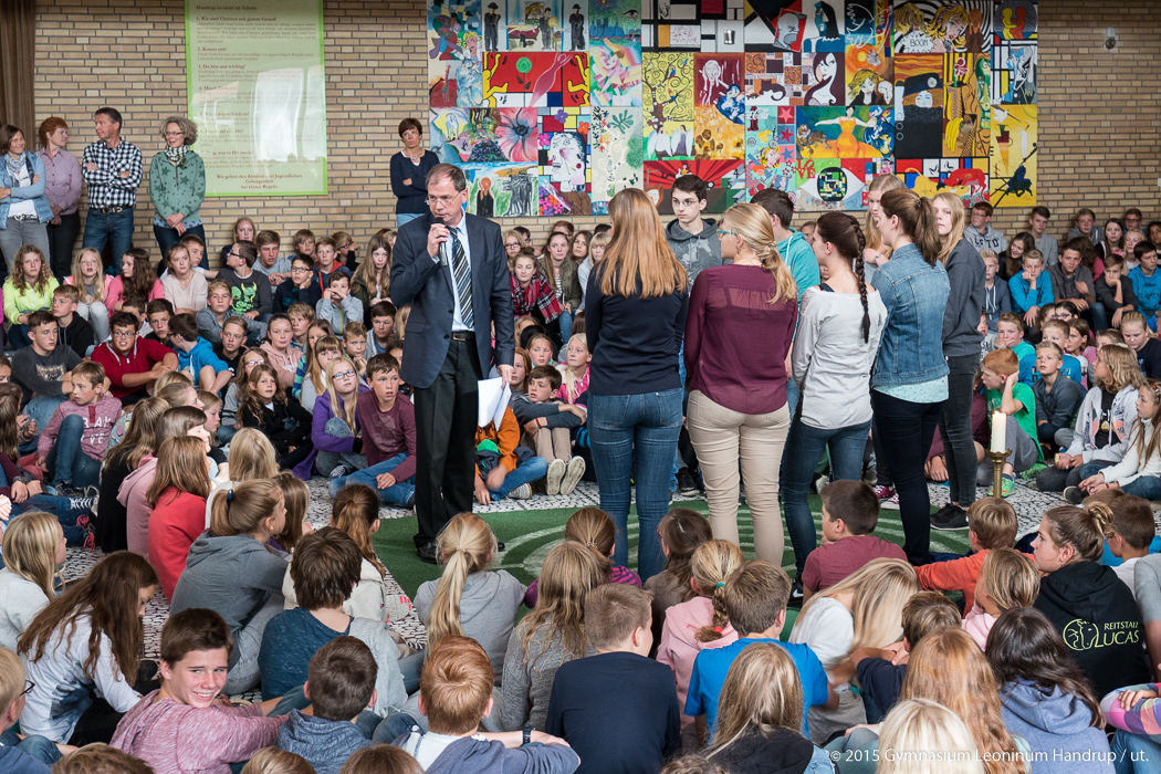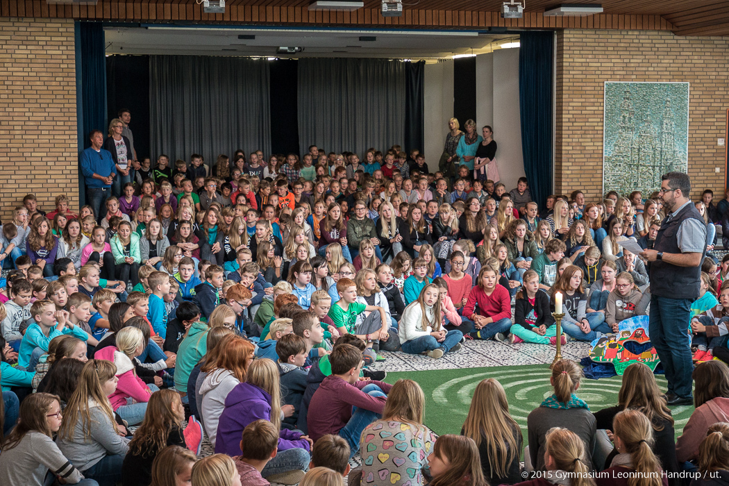 Die erste Vollversammlung des Schuljahres 2015/16 knapp eine Woche nach Schuljahresbeginn zeigte wieder ein “volles Haus”: Keine Klassenstufe war irgendwo im Praktikum, auf Fahrt, schon entlassen oder sonst “nicht da”. Der “Dampfer Leoninum” nimmt Fahrt auf ins Schuljahr 2015/2016.