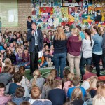 Die neuen Fünftklässler erlebten ihre erste Vollversammlung, sie wurden auch noch einmal klassenweise vom Schulleiter begrüßt und konnten sich den Mitschülern präsentieren. Sie erlebten, wie in einer Vollversammlung die gesamte Schulgemeinschaft darüber informiert wird, was “die anderen” gerade so machen/gemacht haben – was eben an der Schule außerhalb des eigenen Klassenrahmens so läuft.