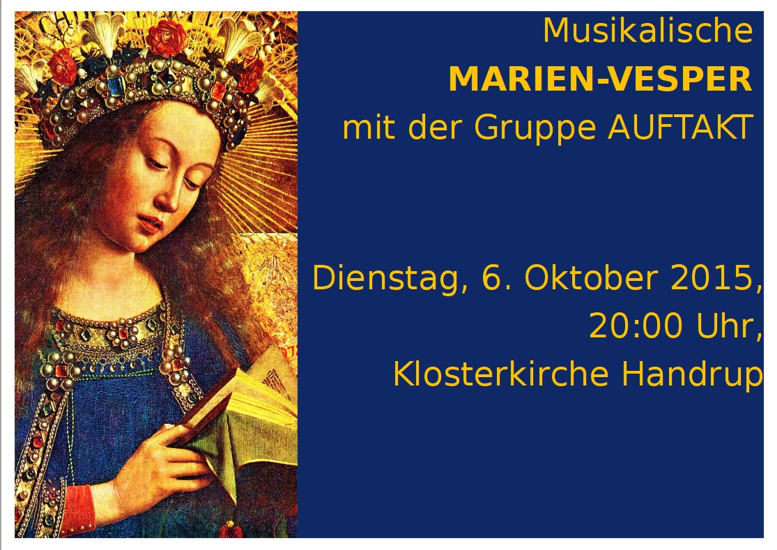 Auftakt: Marien-Vesper 03. Oktober 2015 | Administrator | Kategorien: Aktuelles, AufTakt AufTakt Vesper