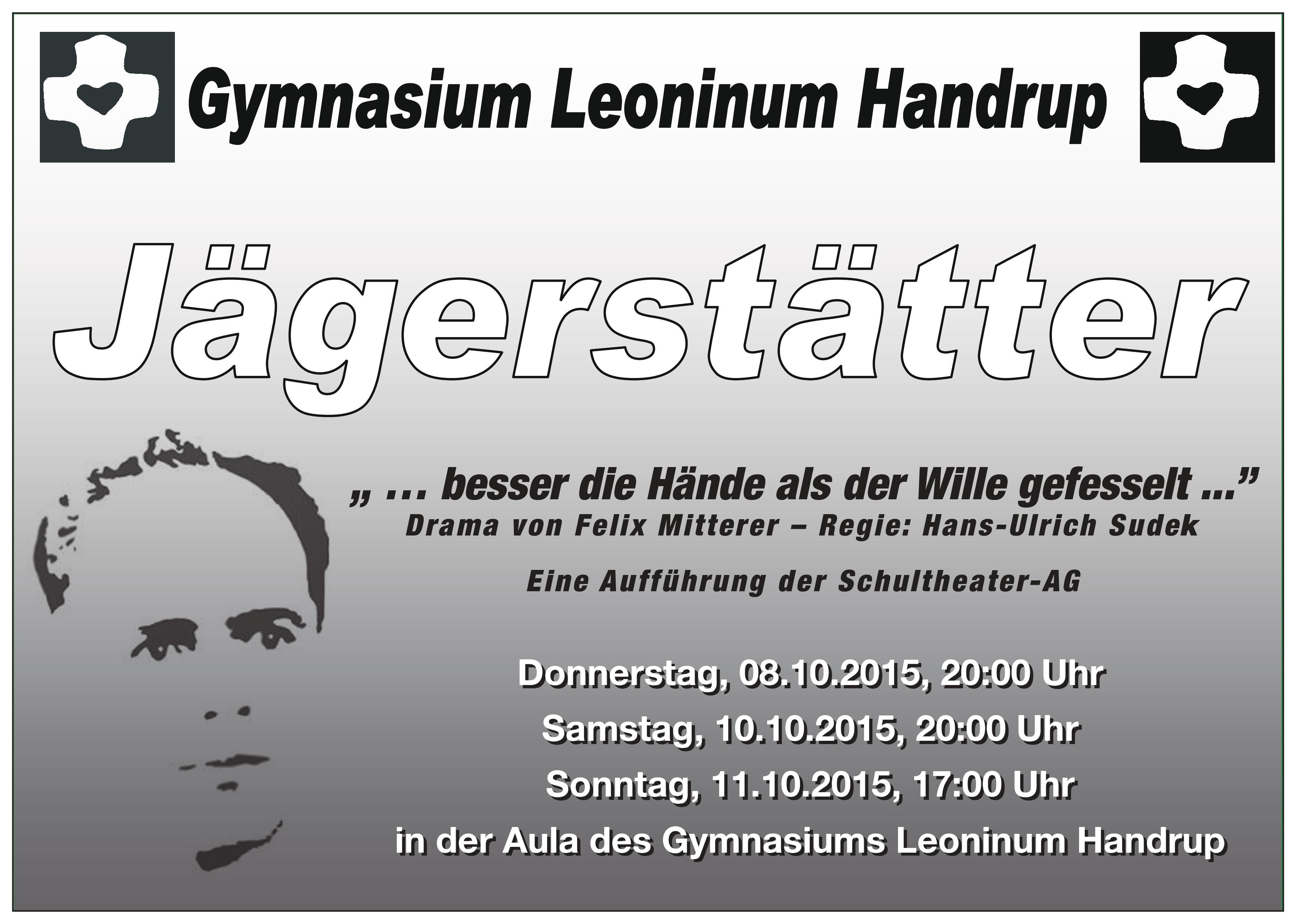 “JÄGERSTÄTTER” – Aufführungen der Schultheater AG am 08.10., 10.10., 11.10. 03. Oktober 2015 | Administrator | Kategorien: Aktuelles Handrup Jägerstätter Leoninum Schultheater