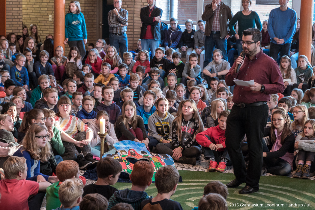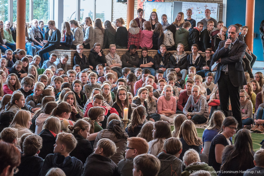 Nun, es war rein zeitlich betrachtet die 2. Schulstunde am 2. Oktober 2015, die noch tiefstehende Sonne fiel als Reflexion von den Fenstern des Klosters in die Aula und sorgte für eine besondere Stimmung.
