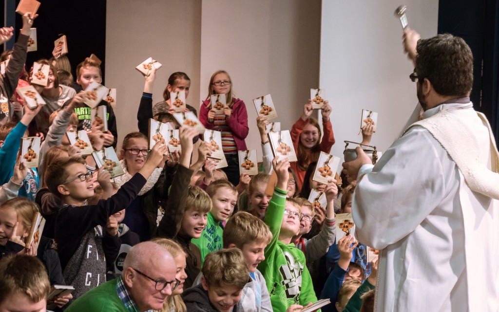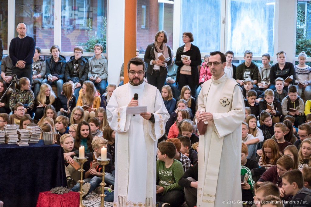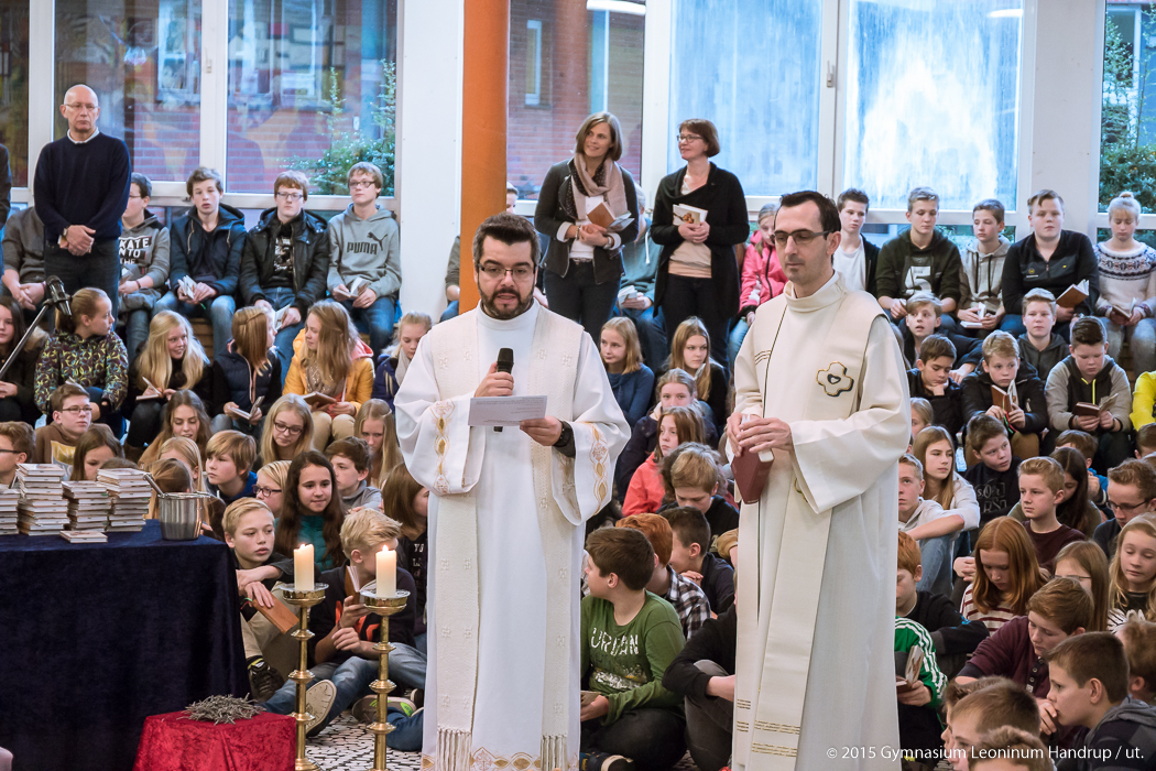 Am vorigen Freitag wurde das neue Schulgebetbuch des Leoninums in einem feierlichen und fröhlichen Gottesdienst “offiziell” eingeführt. Bereits am Morgen und in den Tagen vorher war das Gebetbuch an die Schülerinnen und Schüler und die Lehrer ausgeteilt worden. Nach der Begrüßung durch den Schulleiter Herrn Hanneken übernahmen P. Rektor Marcio Auth und P. Ricardo vom Schulpastoral-Team die Gestaltung des Gottesdienstes: