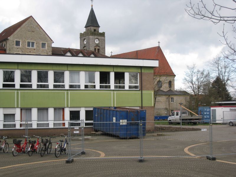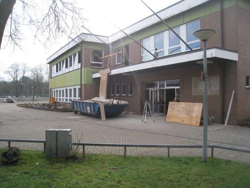 Seit Beginn der Osterferien wird der Aula-Trakt des Leoninums umgebaut. Deshalb hatte bereits die April-Vollversammlung nicht mehr in der Aula, sondern in der neuen Turnhalle stattgefunden (s. früherer Bericht). Hier nun zwei Fotos, die das abgesperrte Gelände und den aktuellen Stand der Baumaßnahmen von außen zeigen.