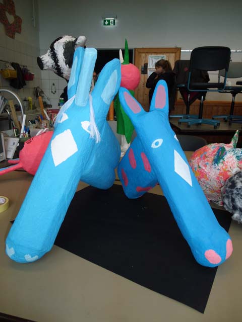 In der Kunstwerkstatt findet man neben den Arbeiten mit Ton, Installationen aus Holz, Herstellung von Objekten aus Papiermache und Schnitzen mit Messer und Seife. Es wird gesägt, gehämmert, Drähte gebogen, geklebt und geformt. Wichtig ist den eigenen Ideen eine Form zu geben.