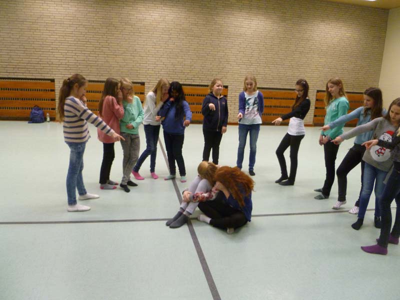 Im Neigungsfach „Theater“, das für die Jahrgänge 5 und 6 angeboten wird, lernst du unterschiedliche theatrale Gestaltungsmittel kennen. Dazu gehört das bewusste Wahrnehmen und Einsetzen des Körpers als wesentliches Ausdrucksmedium im Theater. Es werden z.B. kurze pantomimische Szenen, Standbilder, synchrone Bewegungen etc. entwickelt. Wichtig ist hierbei das gemeinsame Spiel. Als weiteres zentrales Ausdrucksm