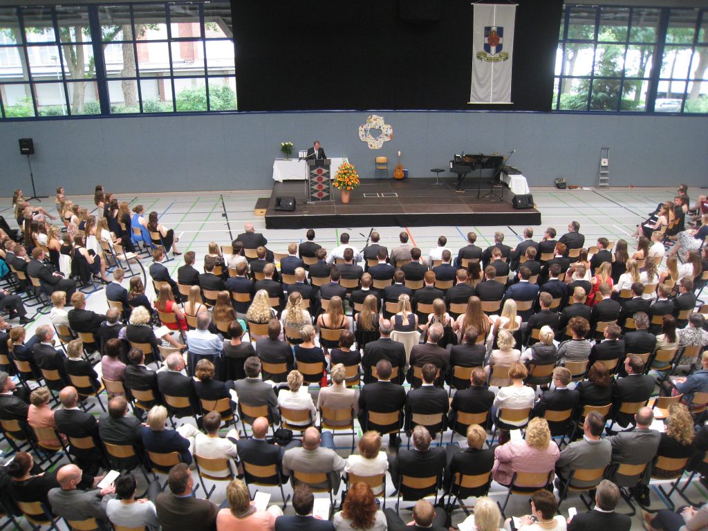 Am heutigen Freitag fand am Gymnasium Leoninum die feierliche Entlassung der Abiturientia 2016 statt. Nach einem eindrucksvollen Gottesdienst in der Handruper Klosterkirche und den Erinnerungsfotos versammelten sich Abiturienten, Eltern, Lehrer und weitere Gäste in der neuen Turnhalle. In seiner Ansprache ging Schulleiter Hanneken auf das Thema “Wandlung/Verwandlung” in verschiedenen Facetten ein, bevor er die Abiturzeugnisse an die stolzen Schulabgänger überreichte.