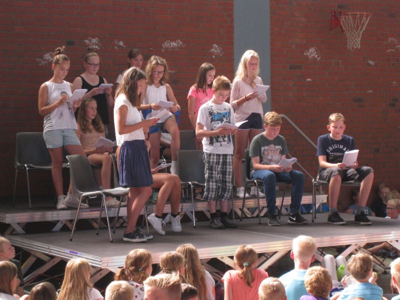 Die Schülertheater AG des 7. Jahrgangs führte heute für die Schülerinnen und Schüler der Jahrgänge 5 und 6 in der Alten Sporthalle “Griechische Sagen” auf. Dabei handelte es sich um eine Lesetheater-Aufführung, bei der die Akteure zwar auf einer Bühne, aber nicht szenisch agierten, sondern die Texte mit verteilten Rollen vorlasen.