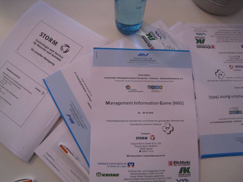 Eine Pause war dringend nötig, denn im Anschluss gab der Spielleiter Herr Vogt eine Einführung in das Unternehmensplanspiel MIG. Mit Arbeitsaufträgen versehen ging es in eine erste Gruppe-Arbeitsphase.