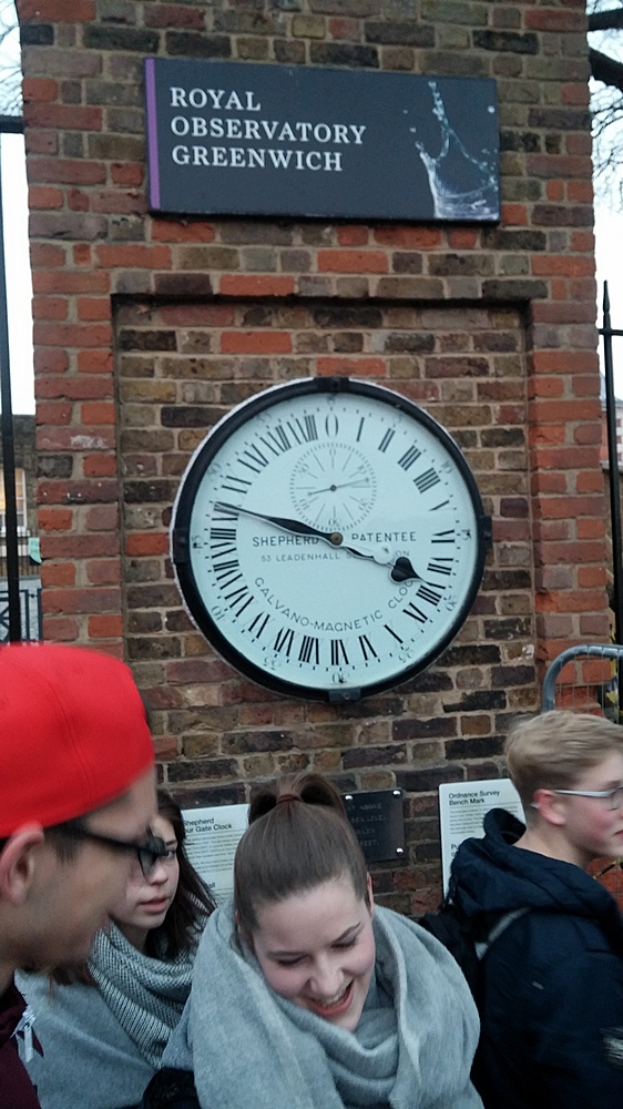 Von dort aus führte der Weg sie zunächst nach Greenwich, wo die Besichtigung des Nullmeridians, des Observatoriums und der Cutty Sark auf dem Programm standen. In London angekommen, fiel den Schülern zuerst auf, dass die Londoner es lieben, joggen zu gehen. Auf dem Marsch durch die City sahen die Schüler dann die Tower Bridge, Shakespeares Globe Theatre, das London Eye, den Buckingham Palace und die Oxford Street.